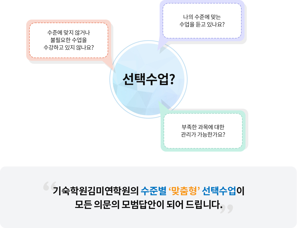 • 2. 선택 수업이지만 수업 성취도 관리, 과제 관리를 받을 수 있습니다.